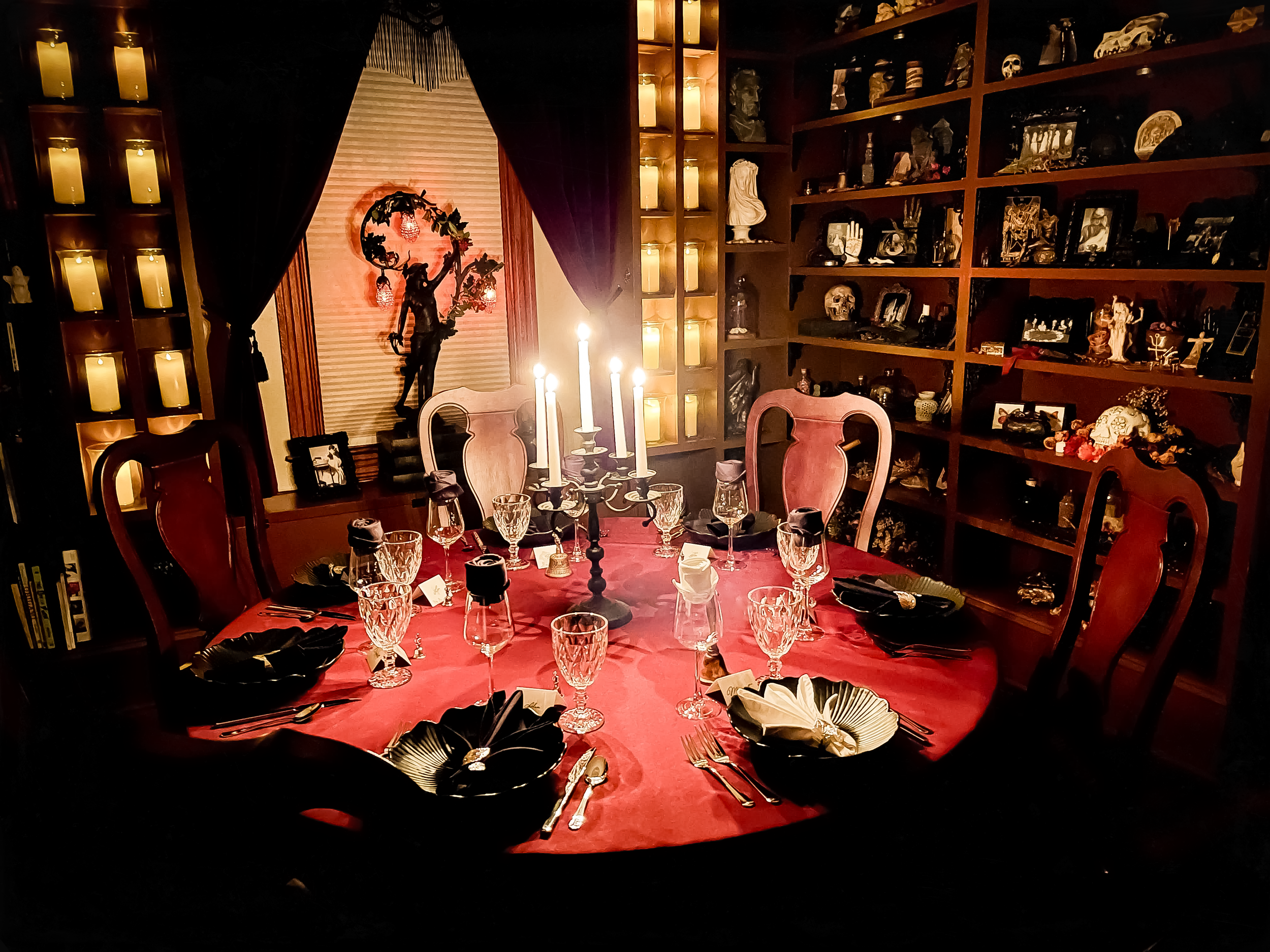 This is not a spiritual gathering — While our events are inspired by occult themes, they are not affiliated with any specific religious practice. Guests are encouraged to immerse themselves in the experience while acknowledging its theatrical nature.